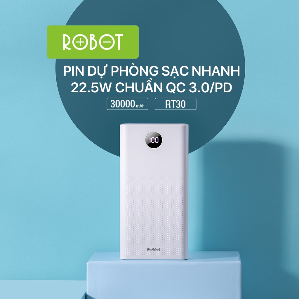 Pin Sạc Dự Phòng 30000mAh ROBOT RT30 Sạc Nhanh PD/QC 3.0 22.5W 5A - 2 Input & 3 Output Hàng Chính Hãng Bảo Hành 12 Tháng