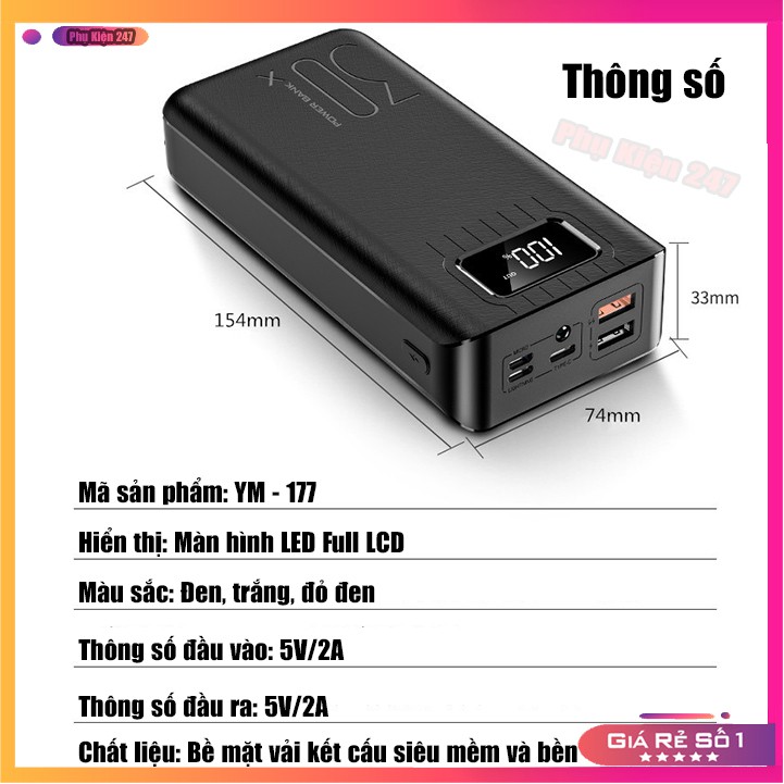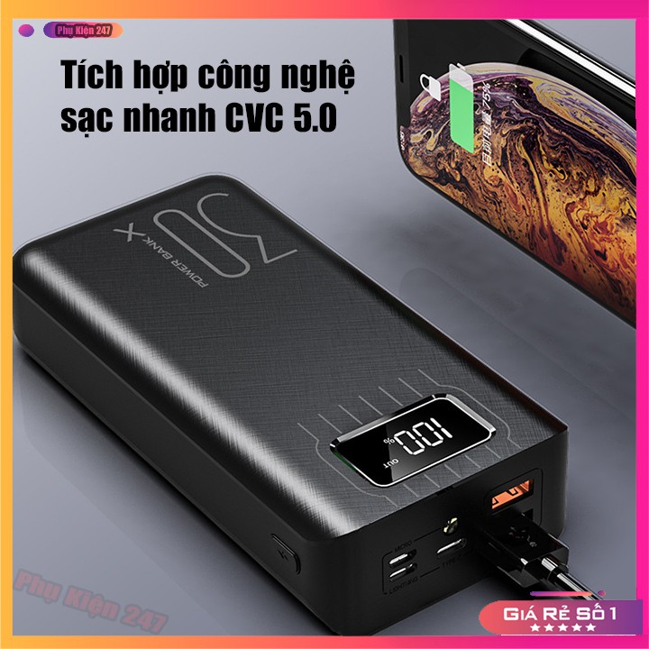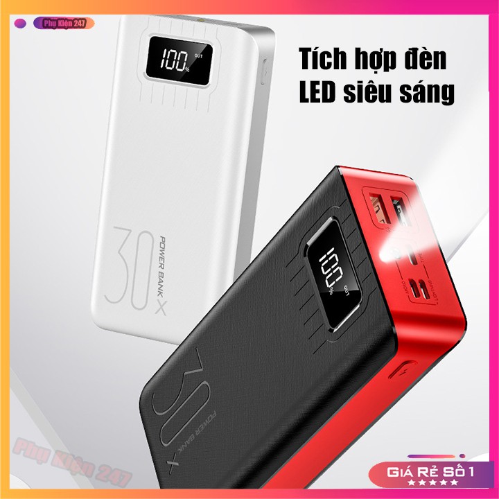 ✅Pin Sạc Dự Phòng 30000mah Với Màn Hình Led Hiện Rõ Thông Số Pin Đi Kèm 2 Cổng Sạc