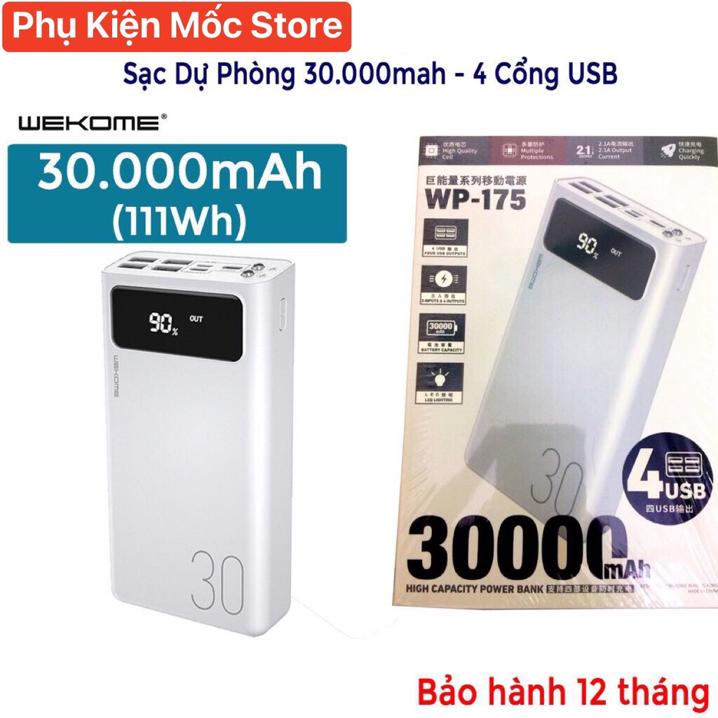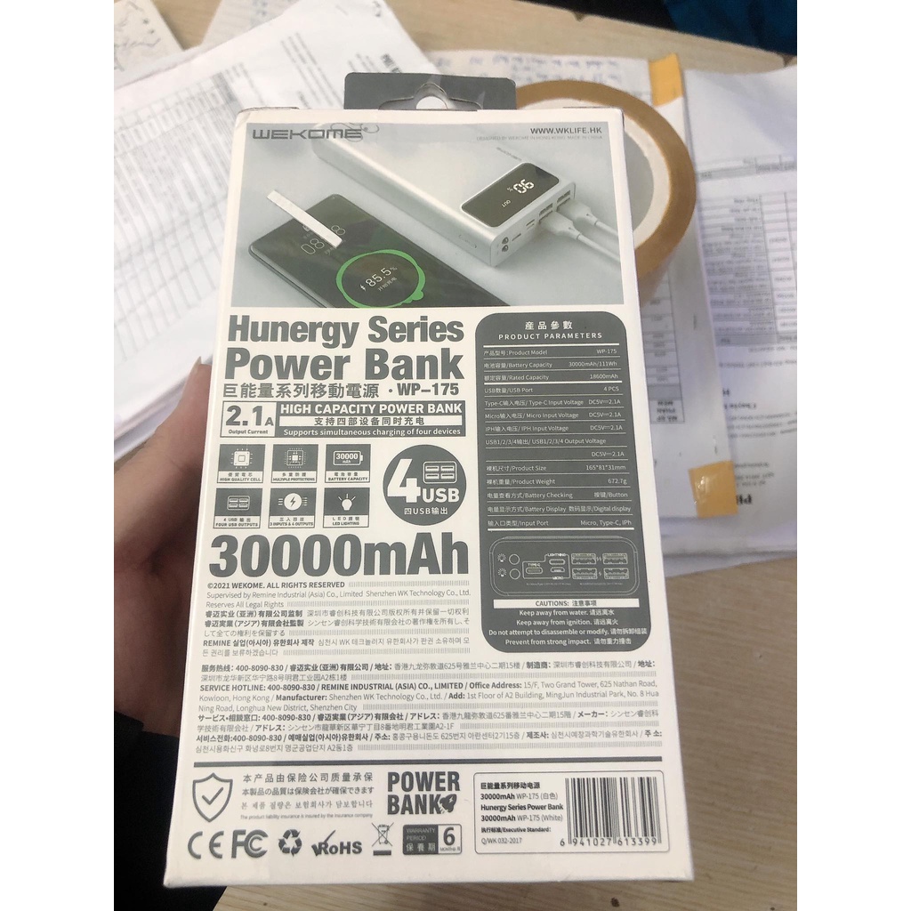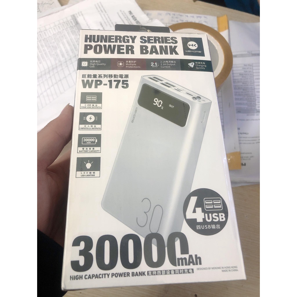 Pin sạc dự phòng 30000mah WK 175, sạc đa năng - đèn led hiển thị pin, 4 cổng USB đa năng, hàng chính hãng