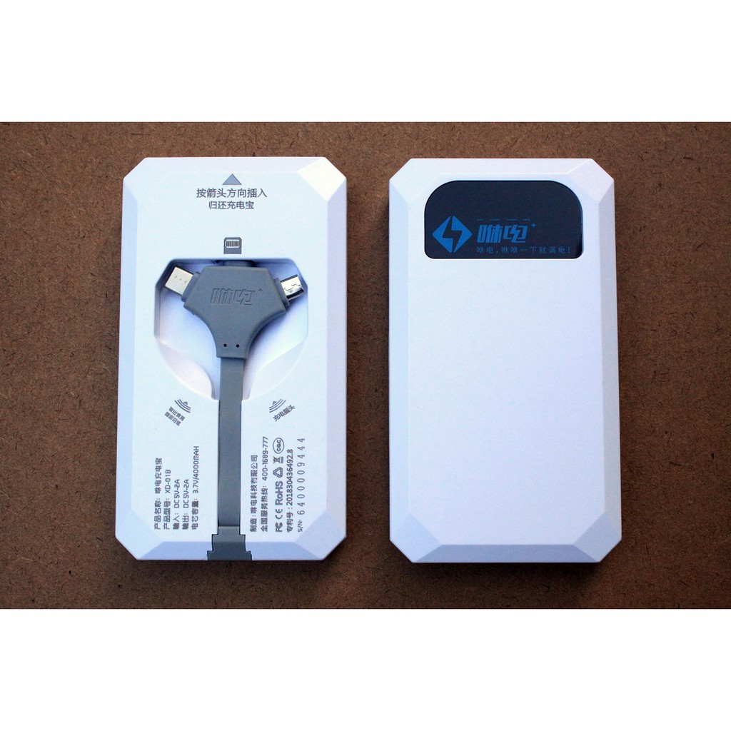 PIN SẠC DỰ PHÒNG 4000mAh GIÁ RẺ - Tích hợp 3 đầu cắm sạc Type C, Micro USB, Lightning- Màu sắc: Trắng.