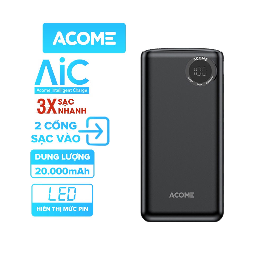 Giới thiệu [Mã giảm 10% đơn 99K] Pin Sạc Dự Phòng ACOME AP202 20000mAh Sạc Nhanh 10.5W Hàng Chính Hãng Bảo Hành 12 Tháng 1 Đổi 1