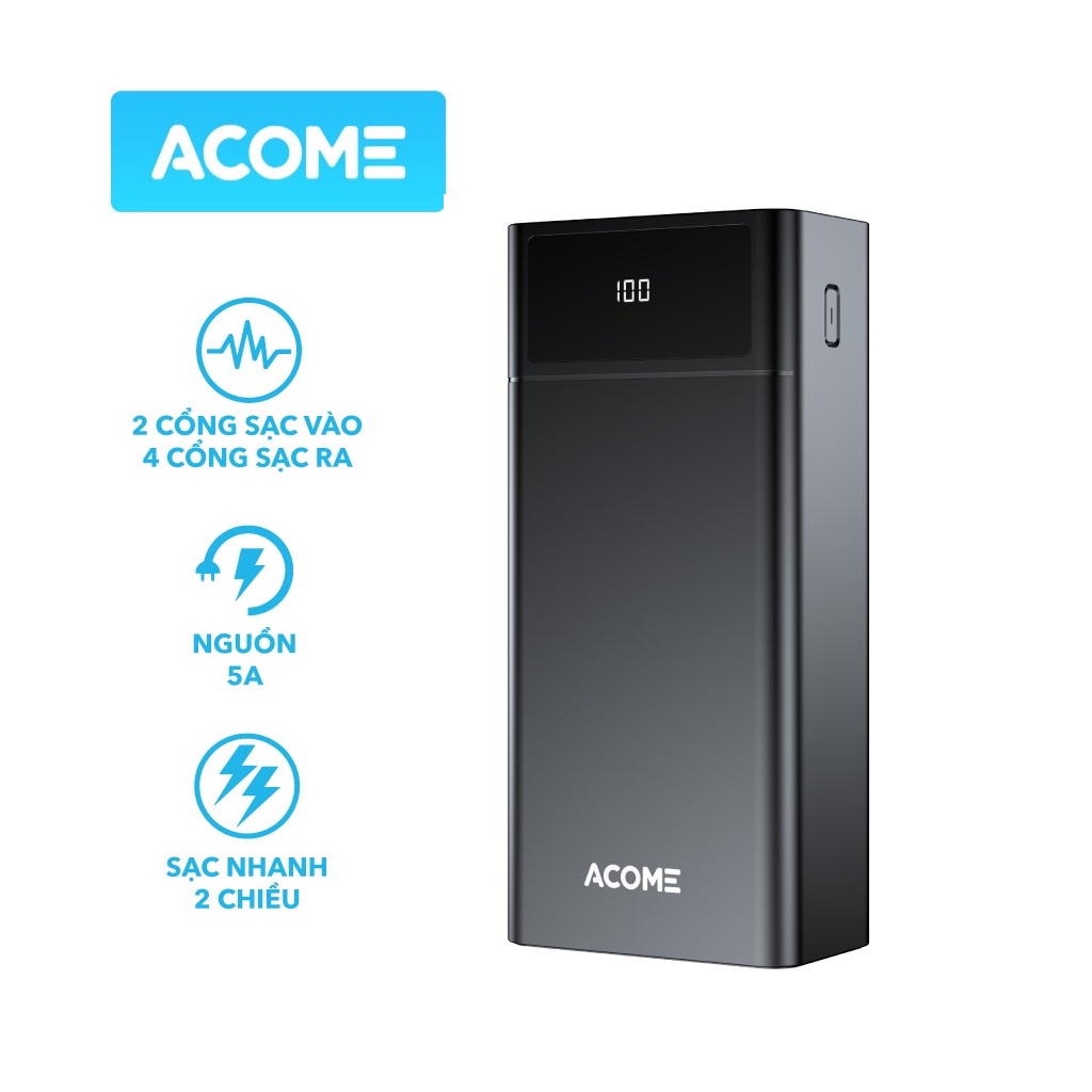 Pin Sạc Dự Phòng ACOME AP401 Dung Lượng Lớn 40000mAh Sạc Nhanh Nhiều Thiết Bị 4 Cổng Sạc Ra 2 Cổng Sạc Vào