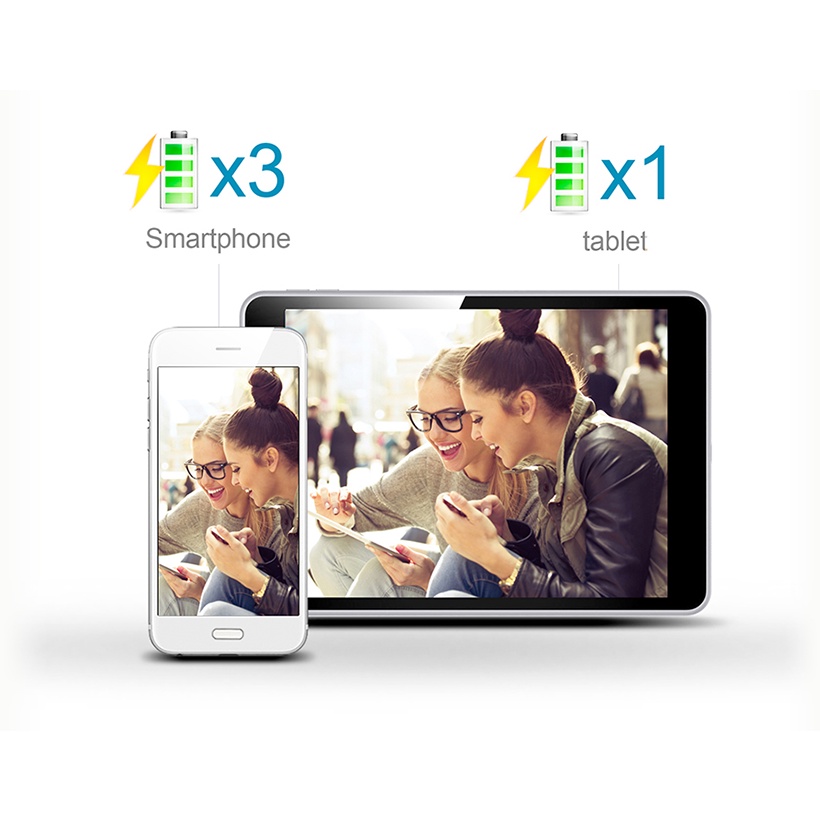 Sản phẩm với dung lượng pin lớn lên tới 7000mAh có thể sạc đầy trung bình 1 table và 3 điện thoại thông minh giúp bạn đảm bảo kết nối liên tục trong khi đang làm việc, công tác.