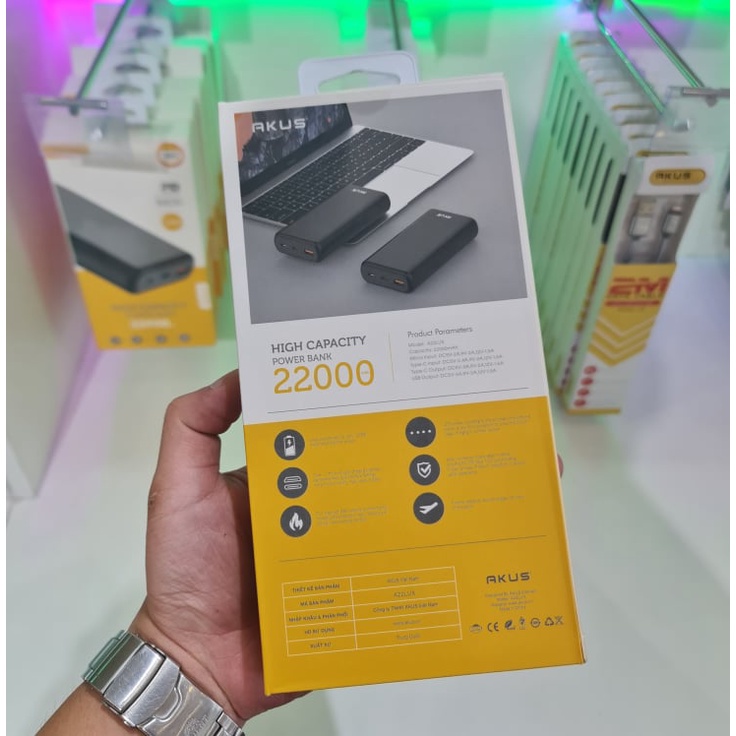 Điện Thoại & Phụ Kiện > Phụ kiện > Sạc dự phòng & Pin > Sạc dự phòng || PIN SẠC DỰ PHÒNG AKUS A22LUX 22000MAHCòn hàng