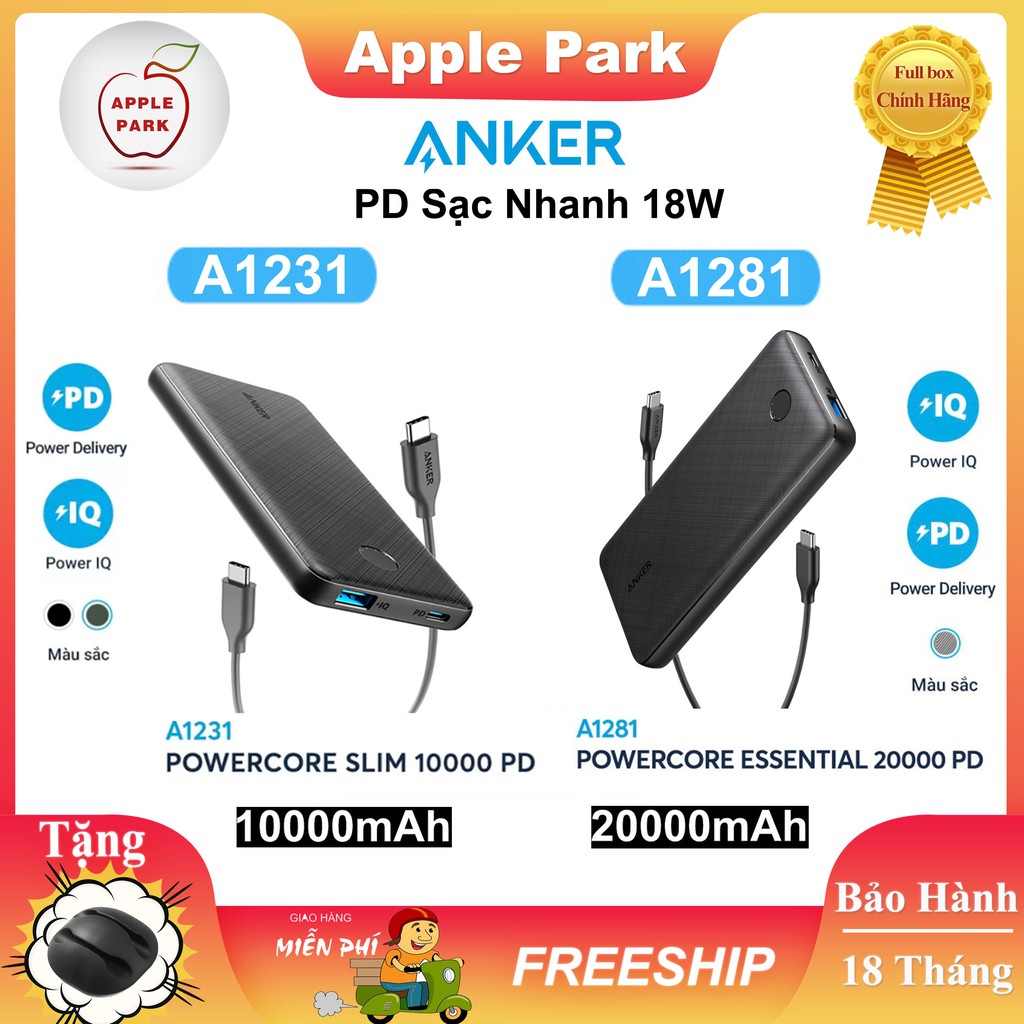 Điện Thoại & Phụ Kiện > Pin sạc dự phòng > 10000 - 20000mAh || Pin Sạc Dự Phòng ANKER A1231 10000mAh A1281 20000mAh PowerCore PD 18W Sạc Nhanh 2 Cổng Đầu Ra USB-A Max 12W PD Max 18WCòn hàng