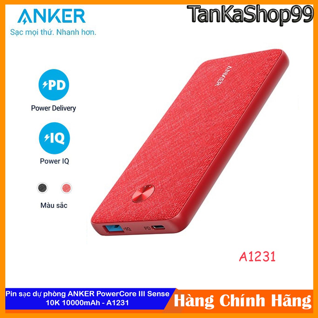 Điện Thoại & Phụ Kiện > Pin sạc dự phòng > 10000 - 20000mAh || Pin sạc dự phòng ANKER PowerCore III Sense 10K 10000mAh - A1231 bọc vải farbicCòn hàng