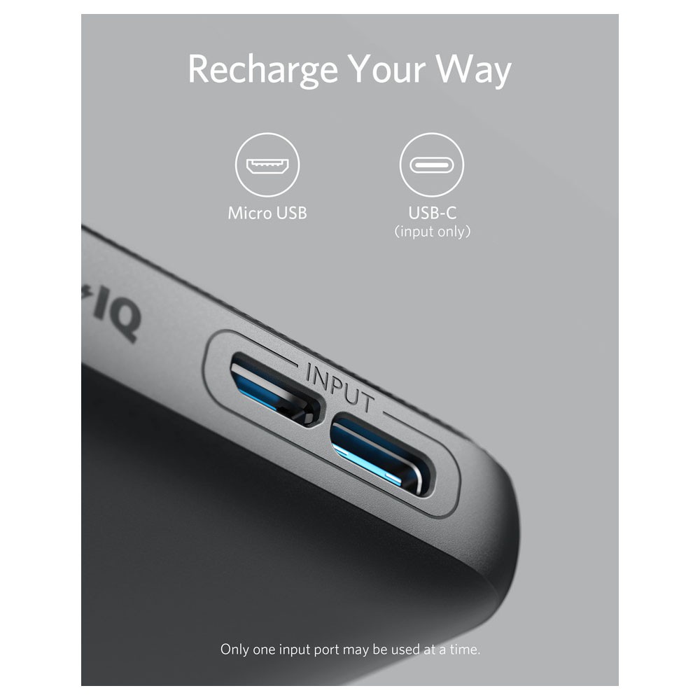 Hỗ trợ sạc lại qua cổng MicroUSB hoặc USB-C (Không hỗ trợ sạc đồng thời cả 2 cổng).