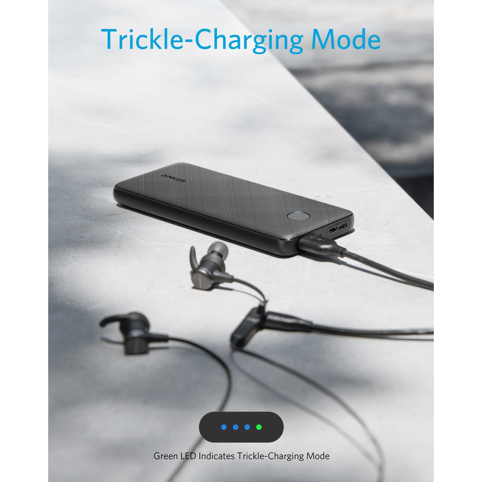 -Chất lượng xuyên suốt: Với bề ngoài mờ đẹp mắt và đèn LED màu xanh mát để báo mức pin, Anker PowerCore Slim 10000 là cao cấp cả trong lẫn ngoài.