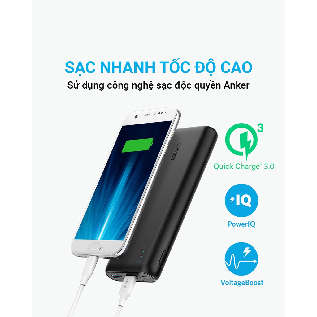 ⚡ Công Nghệ Sạc Tối Ưu:Tích hợp 3 công nghệ: Qualcom 3.0, Power iQ, VoltageBoost, Pin sạc dự phòng Anker PoweCore Speed 20000 có thể sạc bất kỳ điện thoại hoặc máy tính bảng nào với tốc độ tối ưu.