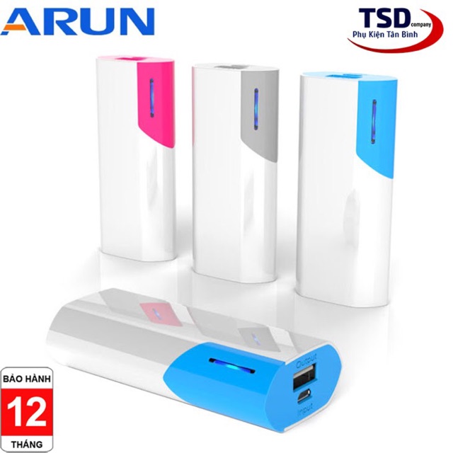 - Pin sạc dự phòng ARUN 5600 mAh với thiết kế nhỏ gọn, có thể mang theo mọi lúc mọi nơi, cho phép cung cấp nguồn điện tức thời cho các thiết bị điện tử.