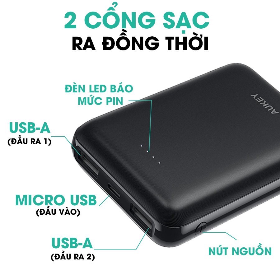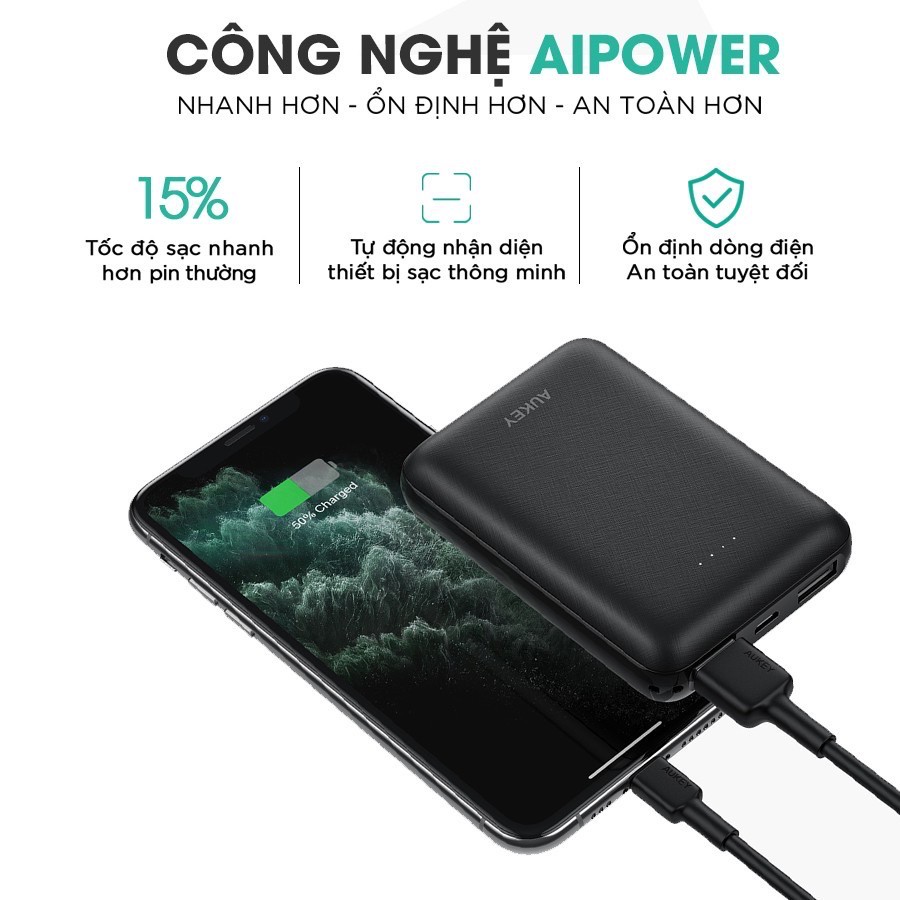 Pin sạc dự phòng AUKEY PBN66 10000mAh 02 Cổng Sạc AiPower 12W