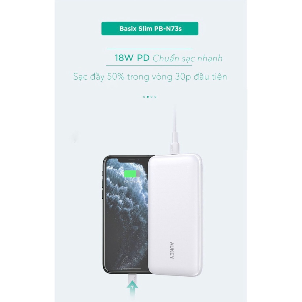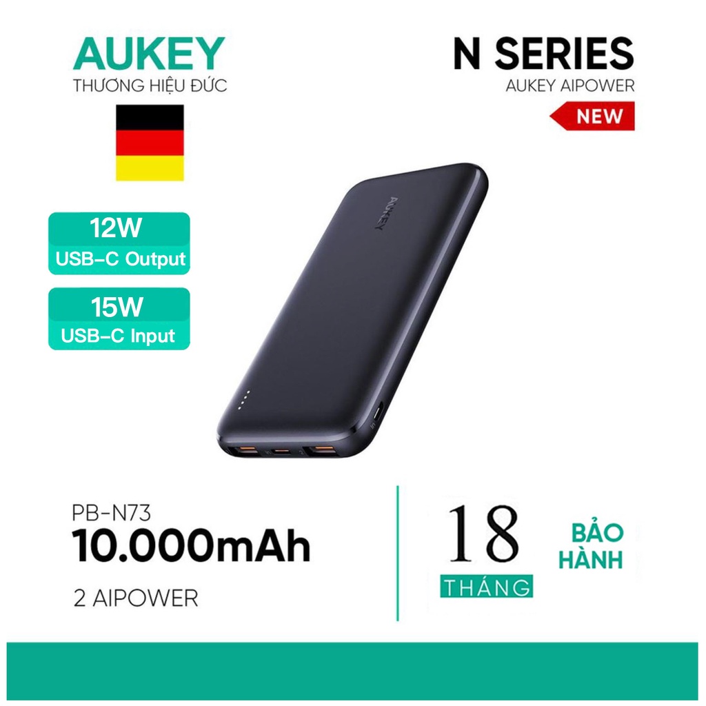 Pin Sạc Dự Phòng Aukey PB-N73 /N73S 10000mAh PD 18W 1C+1A,2 Cổng USB-C Sạc Nhanh PD 18W + USB-A QC 3.0 18W