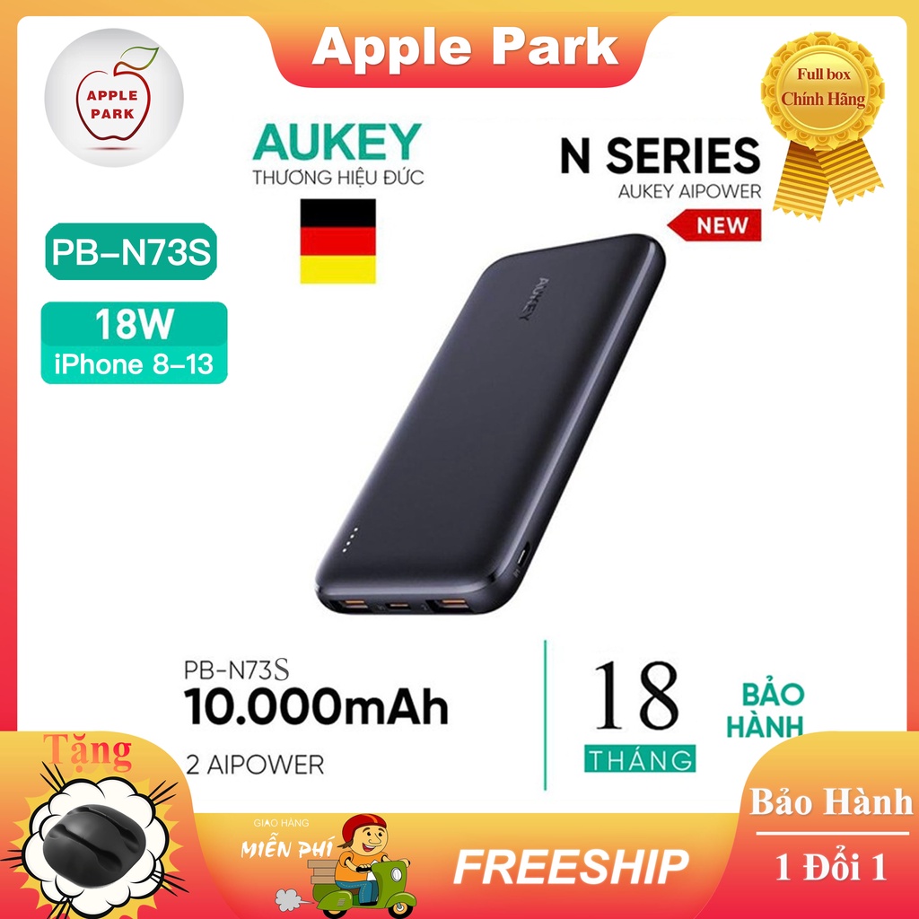 Giới thiệu Pin Sạc Dự Phòng Aukey PB-N73 /N73S 10000mAh PD 18W 1C+1A,2 Cổng USB-C Sạc Nhanh PD 18W + USB-A QC 3.0 18W