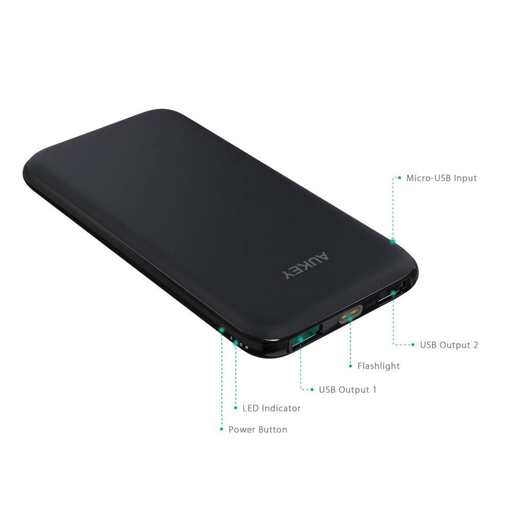 Điện Thoại & Phụ Kiện > Pin sạc dự phòng > 5000 - 10000mAh || Pin Sạc Dự Phòng Aukey Slim 10000mAh 2 Cổng AiPower Kèm Đèn Flash - PB-N51 - LAGACòn hàng
