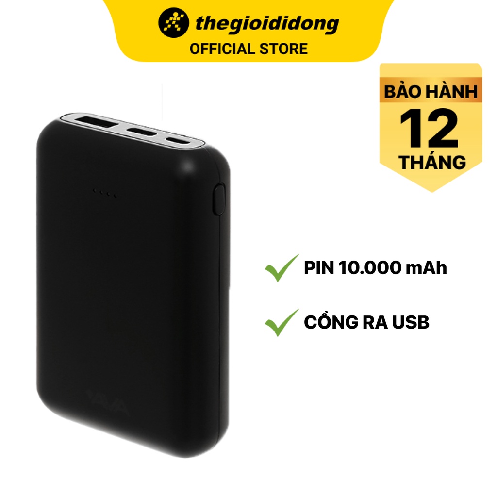 - Sạc được nhiều lần với hiệu suất sạc 64%, dung lượng pin 10.000 mAh.- Dùng bền, an toàn với lõi pin Polymer, thiết kế đèn LED báo hiệu dung lượng pin dễ theo dõi.