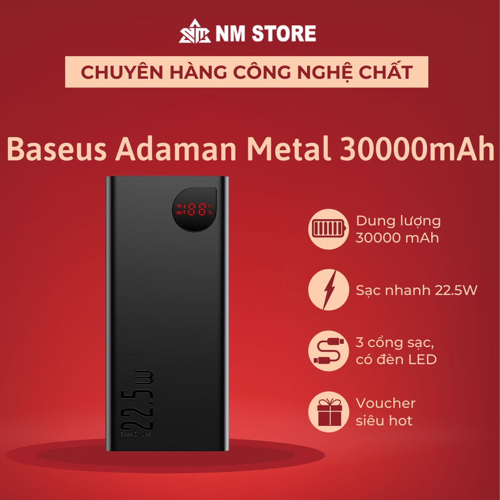 Pin sạc dự phòng Baseus Adaman Metal dung lượng khủng 30000mAh, sạc nhanh 22.5w, 3 Output, màn hình LED hiển thịThương hiệu : Baseus