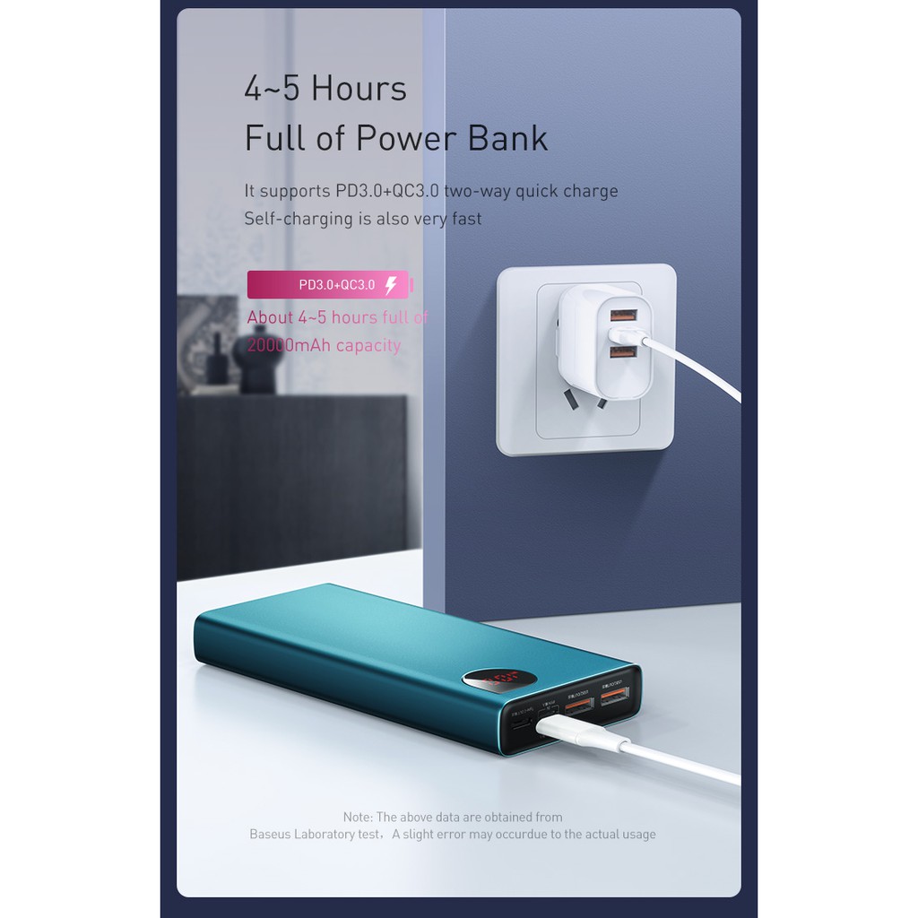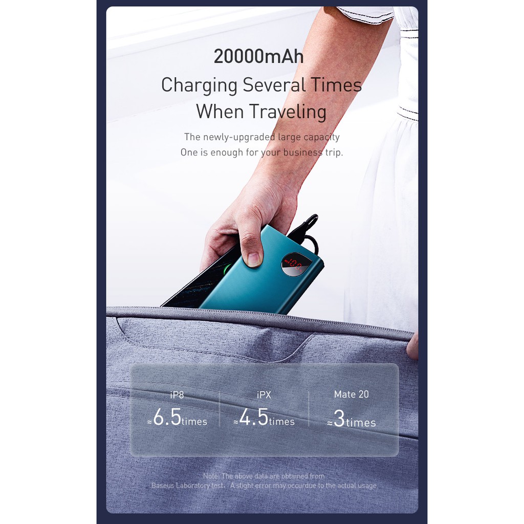 - Pin sạc dự phòng Baseus Adaman có dung lượng 20,000mAh, hỗ trợ hầu hết các chuẩn sạc nhanh hiện nay, tương thích với hầu hết các thiết bị số hiện nay từ Macbook/ Laptop cho đến Smartphone/ Tablet Dung lượng lớn, công suất, hiệu suất sử dụng cao lên đến 22.5W) có 3 port (2 USB + 1 Type C. Cả 3 Port này đều hỗ trợ sạc nhanh (QC3.0 và PD3.0) , có thể dùng sạc pin cho cả 3 thiết bị cùng lúc. Giúp bạn sử dụng thoải mái hơn và quên đi nỗi lo hết pin khi đi công tác, du lịch, giá ngoại Giúp cho mọi thiết bị của bạn luôn trong tình trạng sẵn sàng sử dụng .