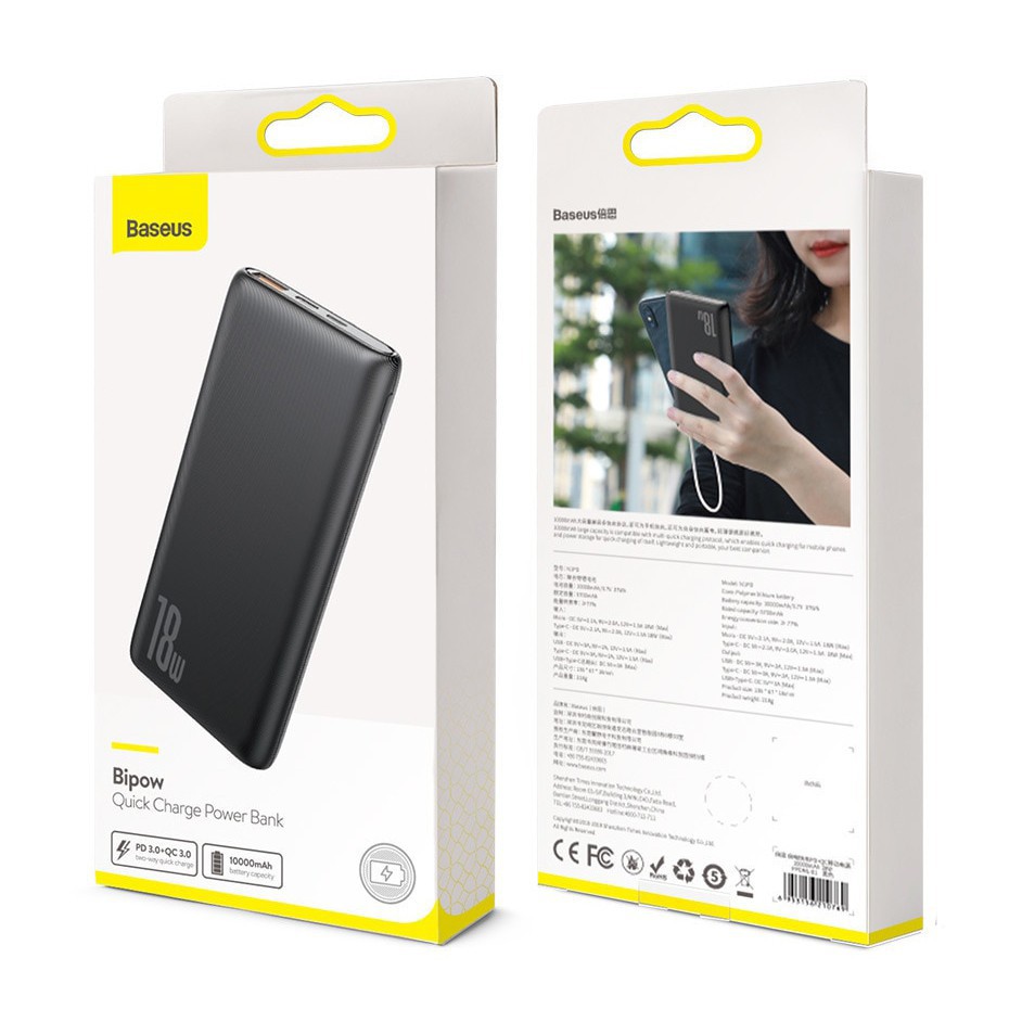 PIN SẠC DỰ PHÒNG BASEUS BIPOW N1PD 10.000MAH SẠC NHANH PD 3.0 VÀ Q.C 3.0 CHÍNH HÃNG HÀNG CHUẨN