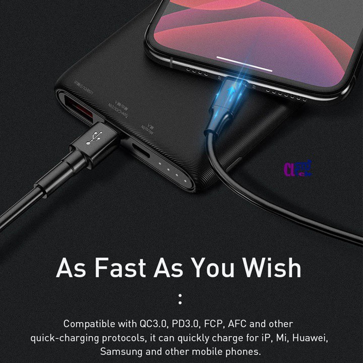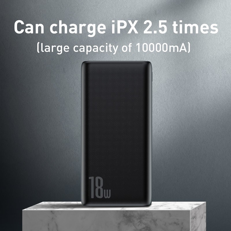 PIN SẠC DỰ PHÒNG BASEUS BIPOW N1PD 10.000MAH SẠC NHANH PD 3.0 VÀ Q.C 3.0 CHÍNH HÃNGhỗ trợ sạc nhanh chuẩn PD (Power delivery) cho các dòng iPhone 8/8 Plus trở về sau, công suất sử dụng lên đến 18W. Bộ sạc có thể sạc đầy 50% pin cho iPhone X chỉ trong vòng 30 phút (bộ sạc thường chỉ lên được khoảng 15-18%).