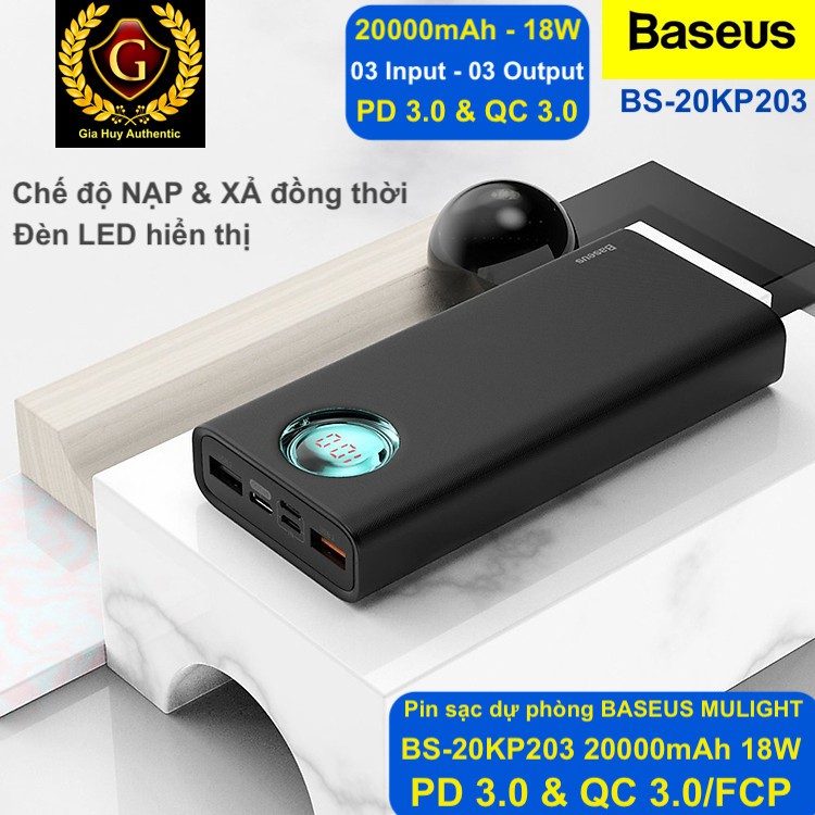 Pin sạc dự phòng BASEUS BS-20KP203 MULIGHT 20000mAh PD 3.0 & QC 3.0 18W (3 cách Input & 3 Output )