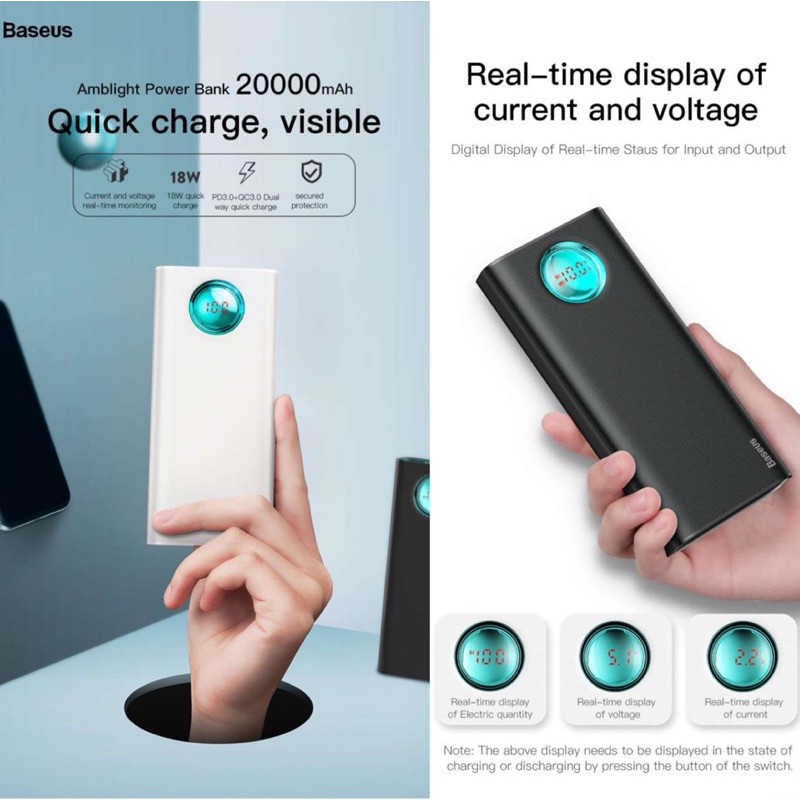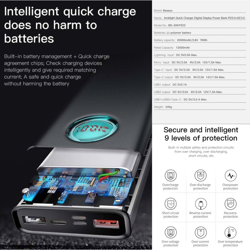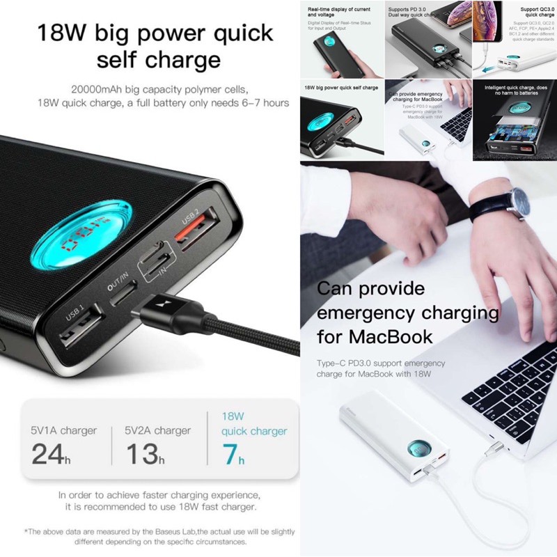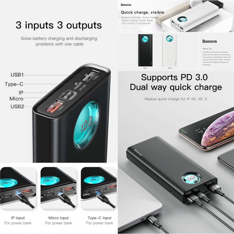 Giới thiệu Pin sạc dự phòng BASEUS BS-20KP203 MULIGHT 20000mAh PD 3.0 & QC 3.0 18W (3 cách Input & 3 Output )