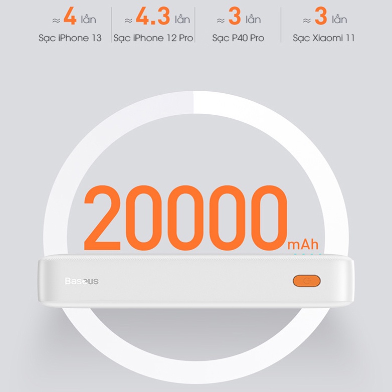 Pin Sạc Dự Phòng Baseus Dung Lượng 20000mAh Sạc Nhanh Hai Chiều PD 20W Cho Iphone 12, 13 Series, Samsung, Xiaomi, Huawei