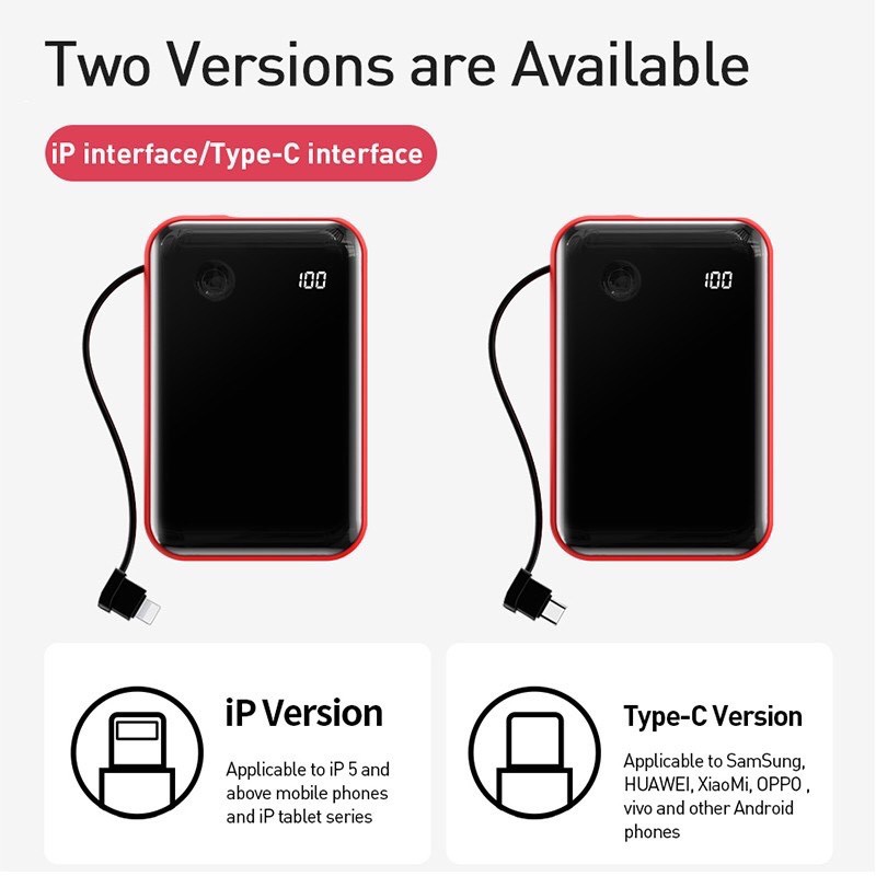 Điện Thoại & Phụ Kiện > Pin sạc dự phòng > 5000 - 10000mAh || Pin Sạc Dự Phòng Baseus Mini 3A 15W 10000mAh Tích Hợp Cáp USB Cho Iphone SamsungCòn hàng