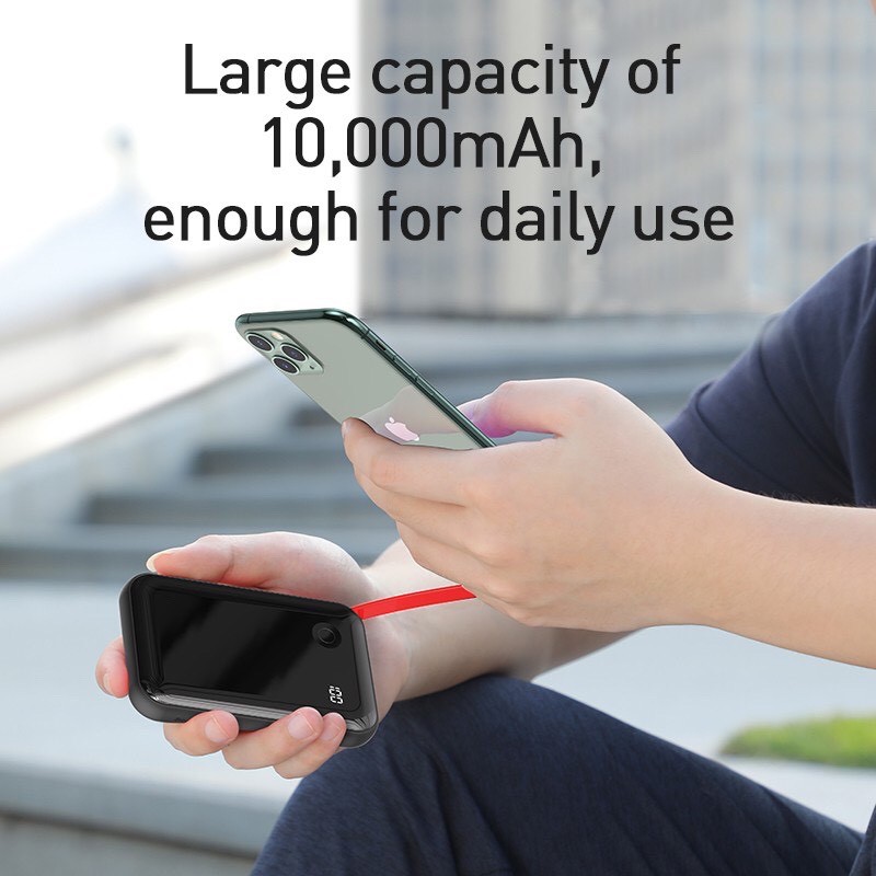 Pin Sạc Dự Phòng Baseus Mini 3A 15W 10000mAh Tích Hợp Cáp USB Cho Iphone Samsung