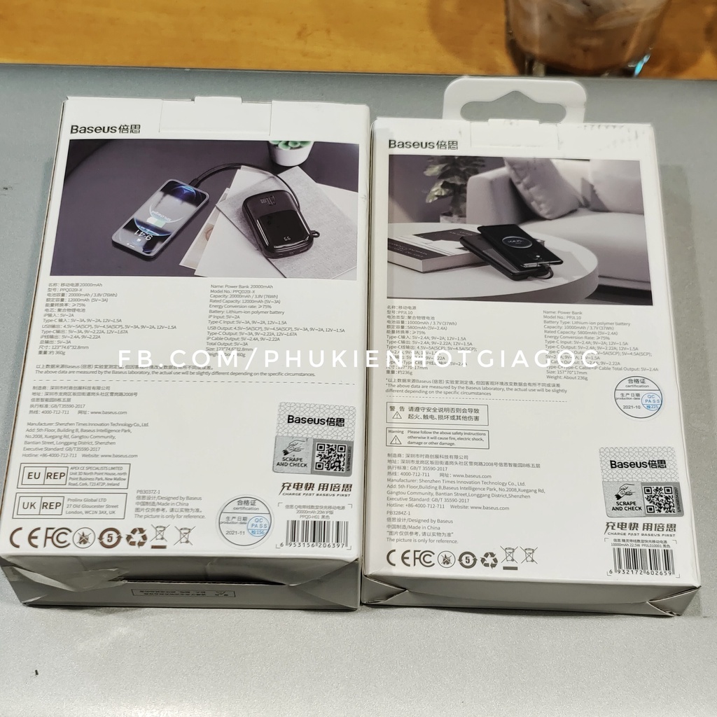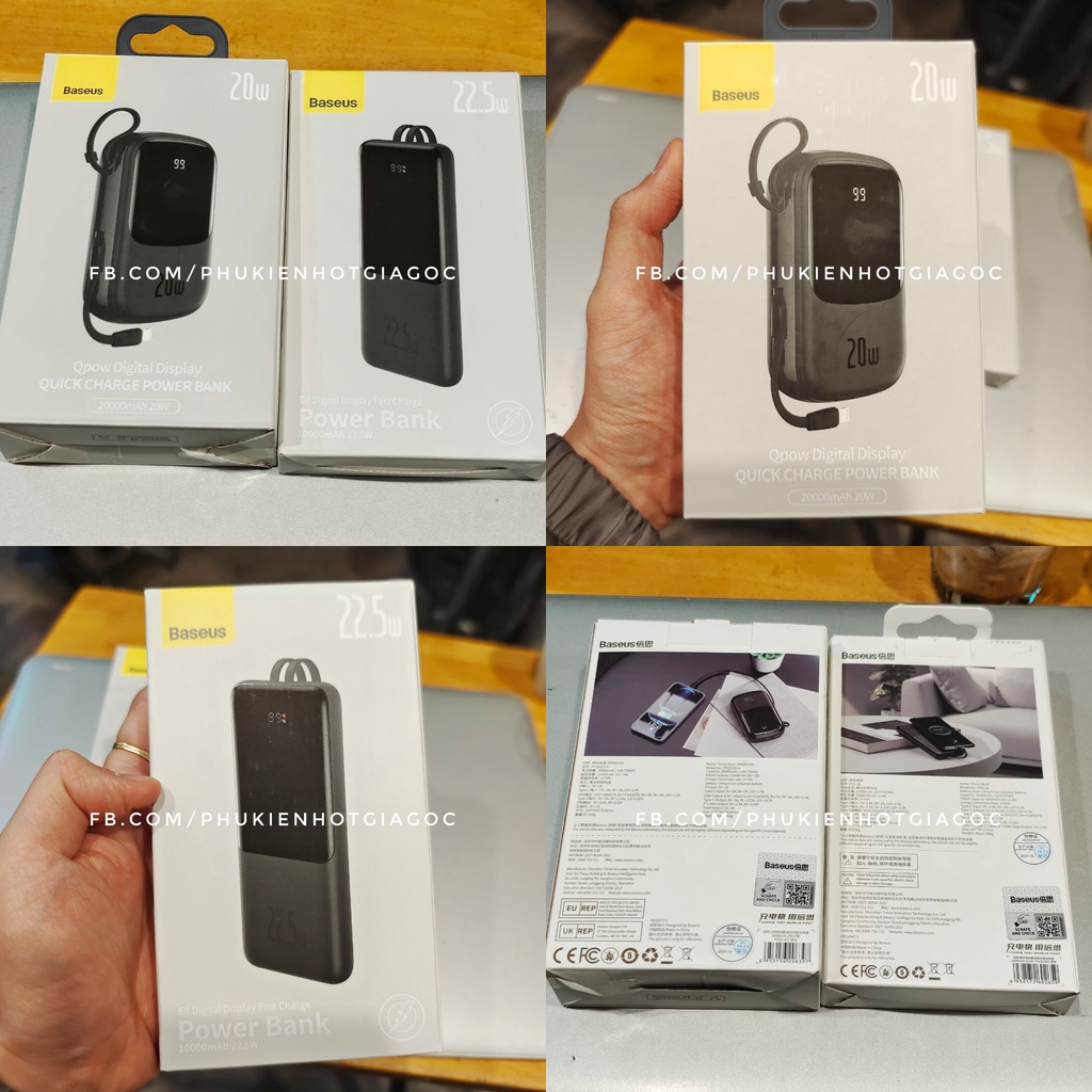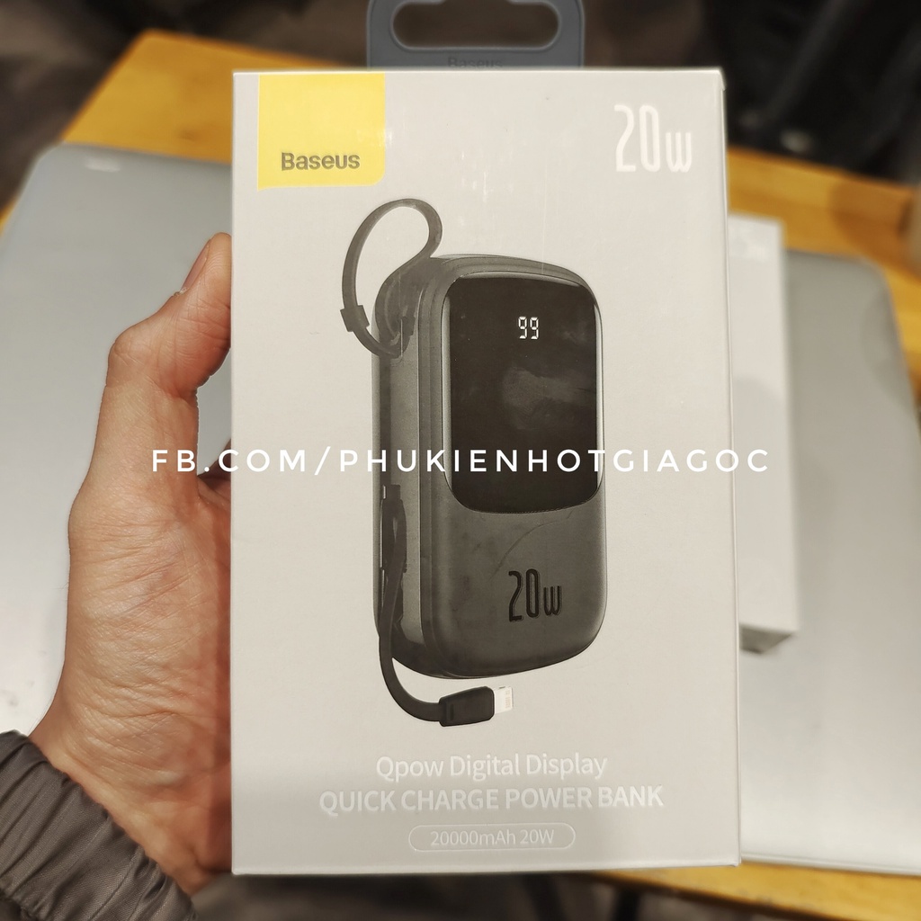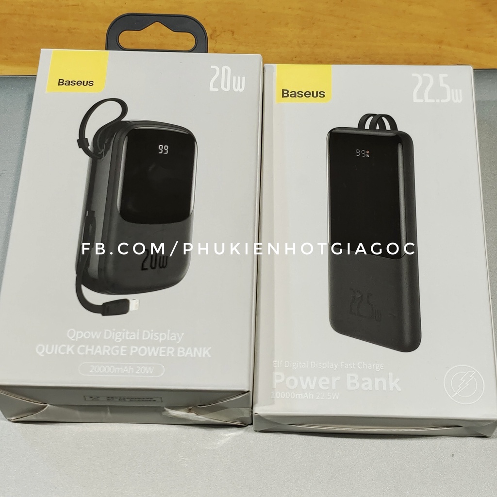 Pin Dự Phòng Baseus Qpow Digital 20000 Sạc Nhanh 20W kèm cáp Iphone / Pin Elf 10000 mAh 22.5W kèm cáp sạc type C--