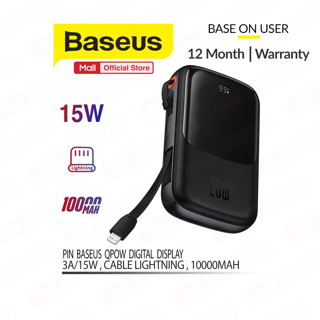 Pin sạc dự phòng Baseus Qpow Digital Display sạc nhanh 3A 10000mAh tích hợp cáp sạc Lightning được trang bị 2 cổng USB