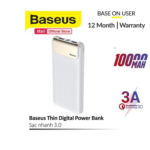 Điện Thoại & Phụ Kiện > Phụ kiện > Sạc dự phòng & Pin > Sạc dự phòng || Pin sạc dự phòng Baseus Thin Digital 10000mAh sạc nhanh 3.0 có khả năng sạc đầy 80% pin thiết bị trong 30 phútCòn hàng