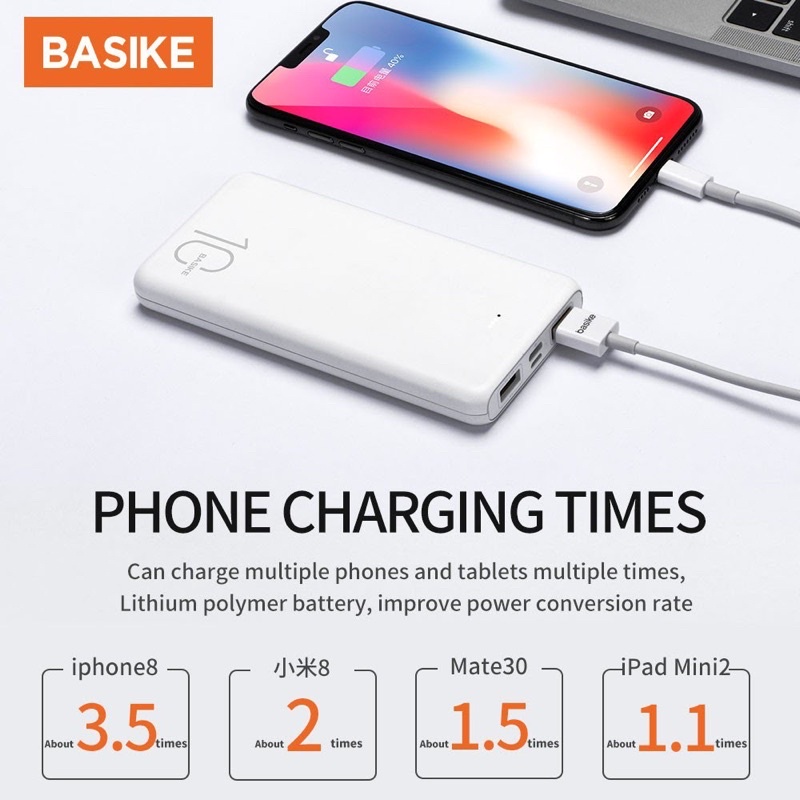 Pin Sạc Dự Phòng Basike Bsk-pt62 Dung Lượng 10000mah Màu Trắng Có Đèn Led Và Cáp Sạc Chất Lượng Cao