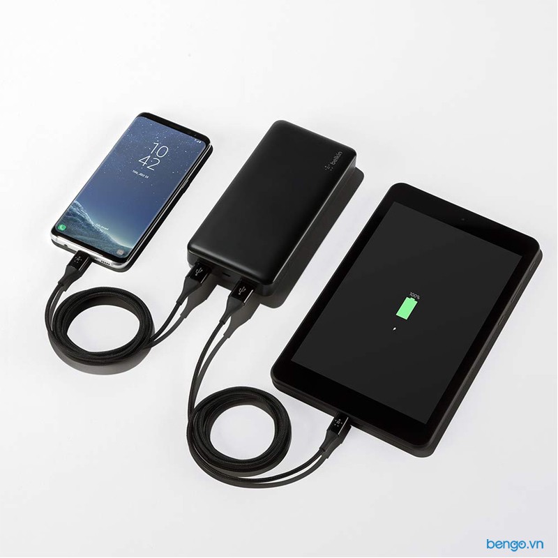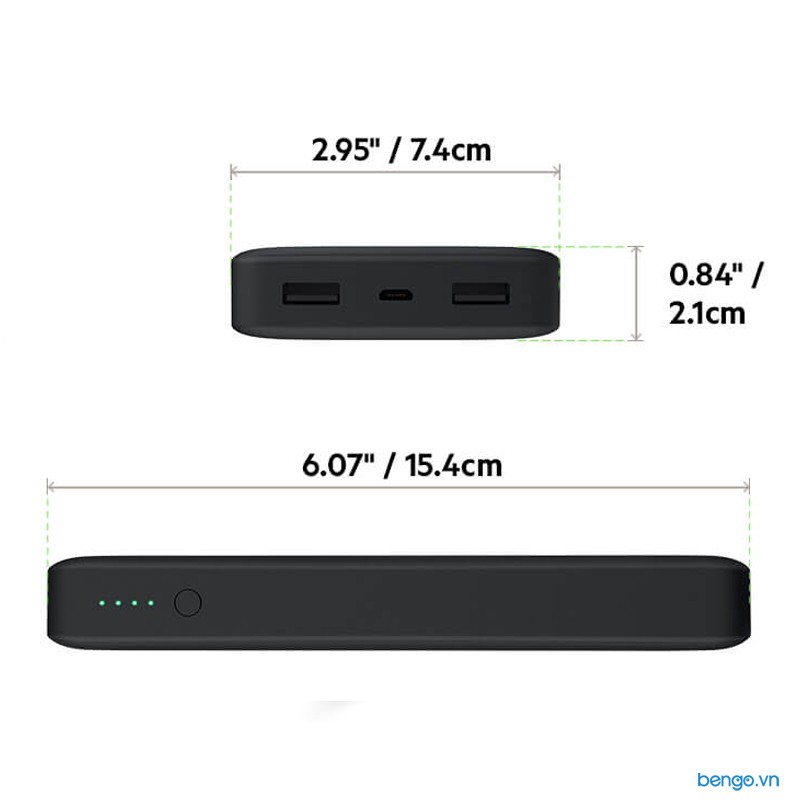 Pin sạc dự phòng Belkin Pocket Power 15000mAh thiết bị của bạn luôn được sạc bất cứ nơi nào với dung lượng pin 15000mAh, cung cấp thêm 105 giờ xem video, ... Hai cổng USB-A có tổng công suất lên tới 3.4A sạc nhanh chóng và an toàn cho các thiết bị như điện thoại thông minh, đồng hồ thông minh, dây đeo thể dục, tai nghe, loa,... Đầu vào 5V/2.0A giúp sạc nhanh giữa các lần sử dụng.