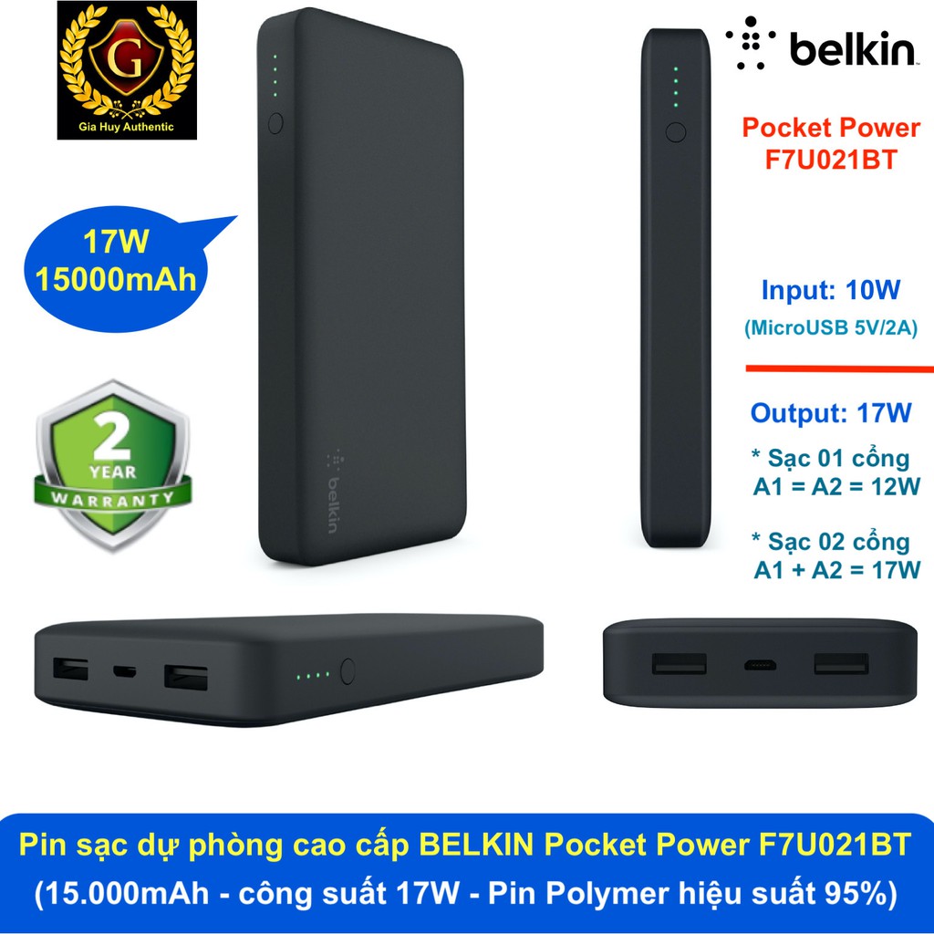 GIỚI THIỆU: Pin sạc dự phòng BELKIN Pocket Power F7U021BT 15000mAh 24W