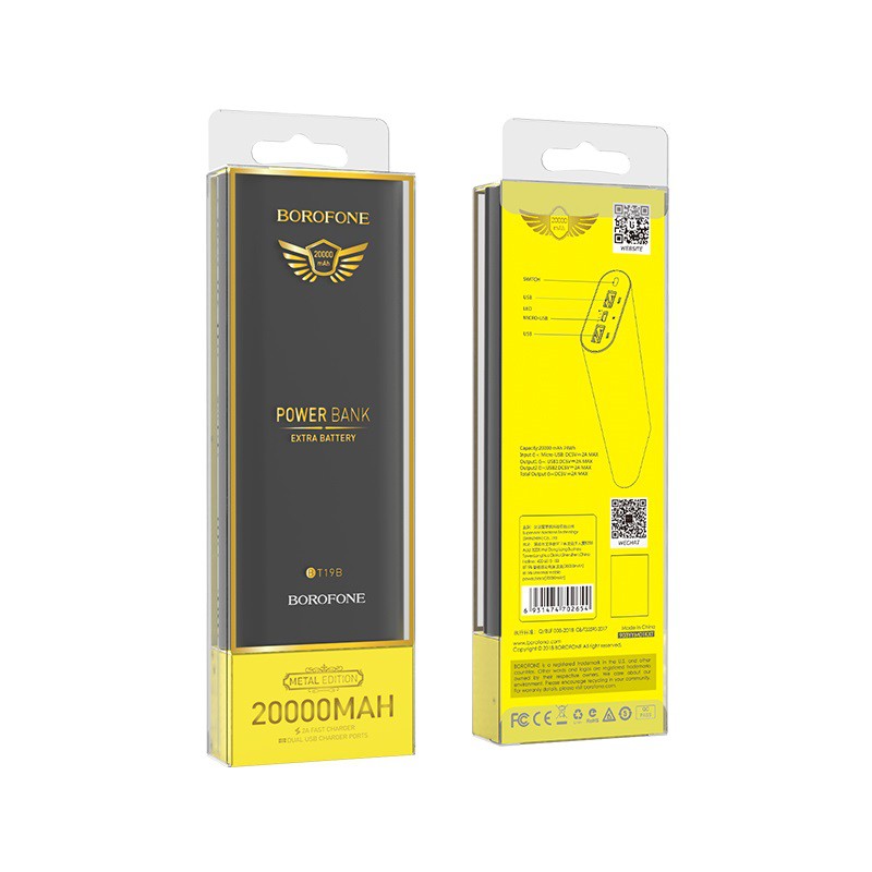 Pin sạc dự phòng Borofone BT19B Universal 20000mAh Output 2A, Vỏ kim loại - Hàng chính hãngBOROFONE BT19B Đa năng, ngân hàng điện di động, dung lượng 20000mAh, đầu vào Micro-USB và đầu ra USB 2A kép, đèn LED báo mức nguồn