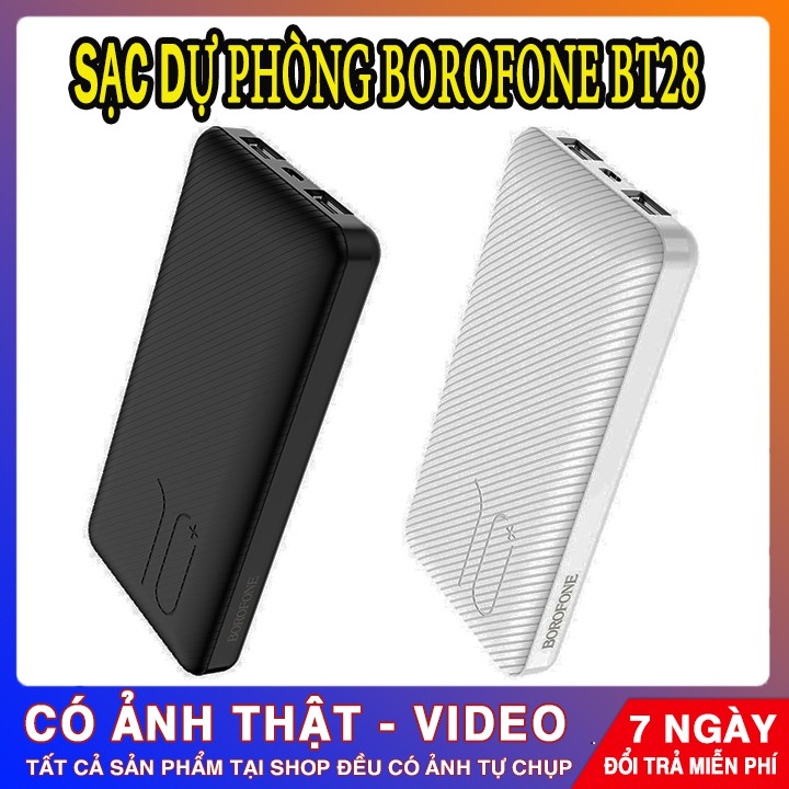 - Pin Sạc Dự Phòng BOROFONE BT28, 10000mah, Cổng vào Micro USB / USB C, 2 Cổng ra 2A là một sản phẩm của BOROFONE đến từ Hongkong, đây là chuyên sản xuất các phụ kiện dành cho điện thoại với các mức giá ở tầm trung nên được rất nhiều lựa chọn và tin dùng.
