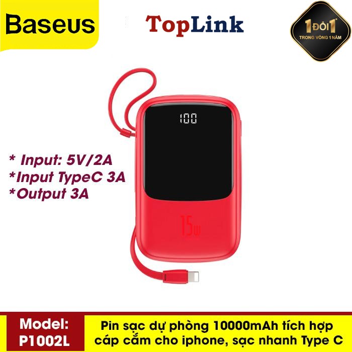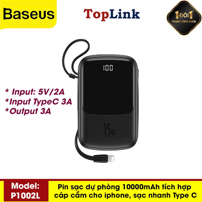 Pin Sạc Dự Phòng BS-P1001L 10000mah Power Bank 3A Công Xuất 15W Tích Hợp Cáp Sạc Lightning Cho Iphone Đi Kèm Hỗ Trợ Sạc Nhanh Cổng USB KépChào mừng bạn đến với TOPLINK - Thế Giới Phụ Kiện