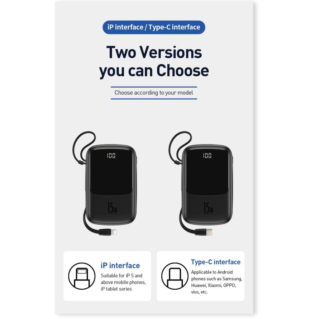 Pin Sạc Dự Phòng BS-P1001L 10000mah Power Bank 3A Công Xuất 15W Tích Hợp Cáp Sạc Lightning Cho Iphone, hỗ trợ sạc nhanh