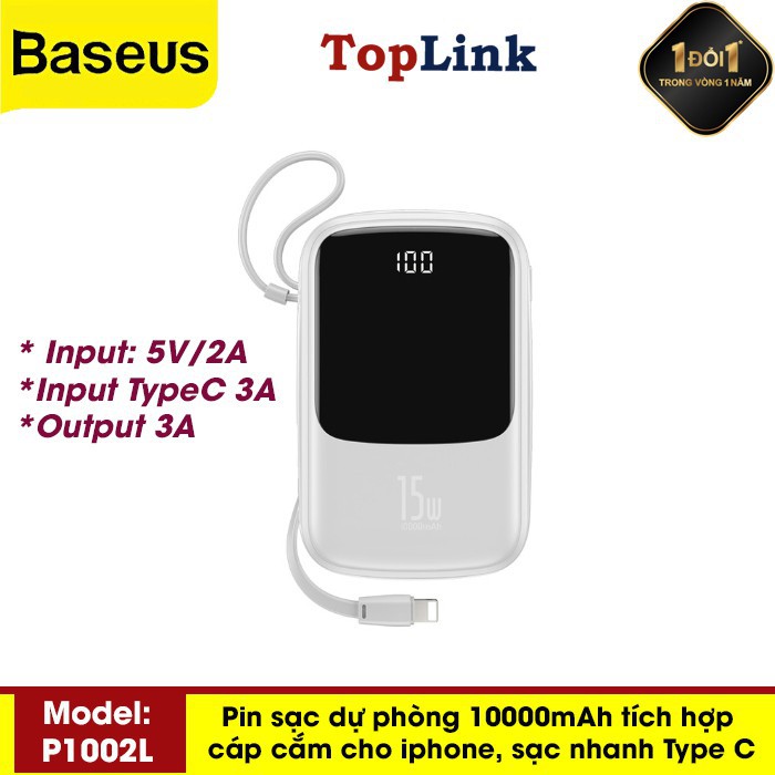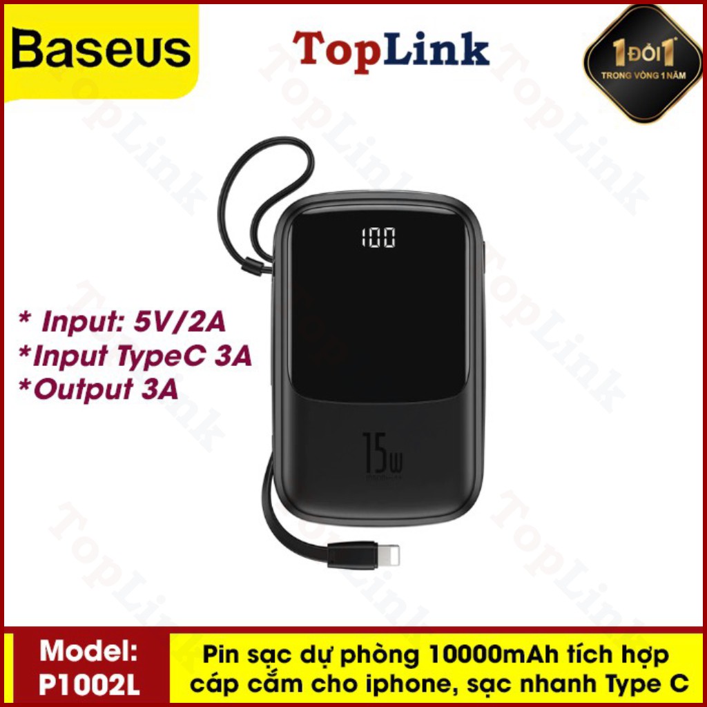 Pin Sạc Dự Phòng BS-P1001L 10000mah Power Bank 3A Công Xuất 15W Tích Hợp Cáp Sạc Lightning Cho Iphone Đi Kèm Hỗ Trợ Sạc Nhanh Cổng USB KépChào mừng bạn đến với TOPLINK - Thế Giới Phụ Kiện