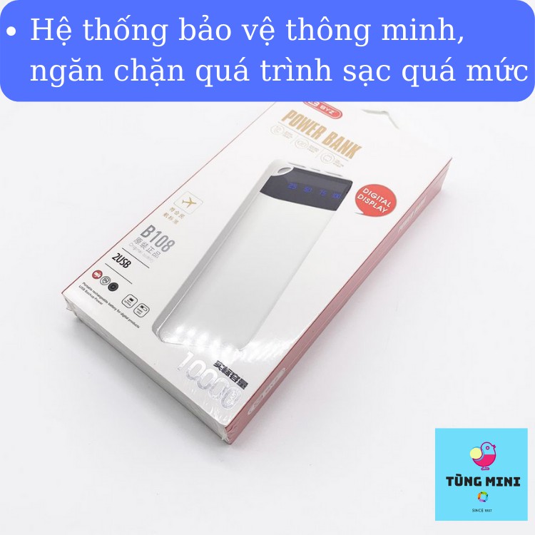 Pin Sạc Dự Phòng BYZ-B108 10.000mah Sạc Nhanh 2 Thiết Bị Hiển Thị Phần Trăm Pin Không Loạn Cảm Ứng Tùng