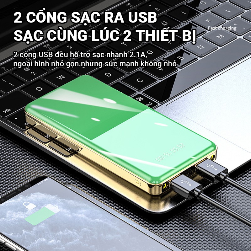 - Dung lượng pin 15000mAh đủ dùng trong 3-4 ngày, có 2 cổng sạc ra USB giúp sạc cùng lúc 2 thiết bị, không còn phải chờ đợi