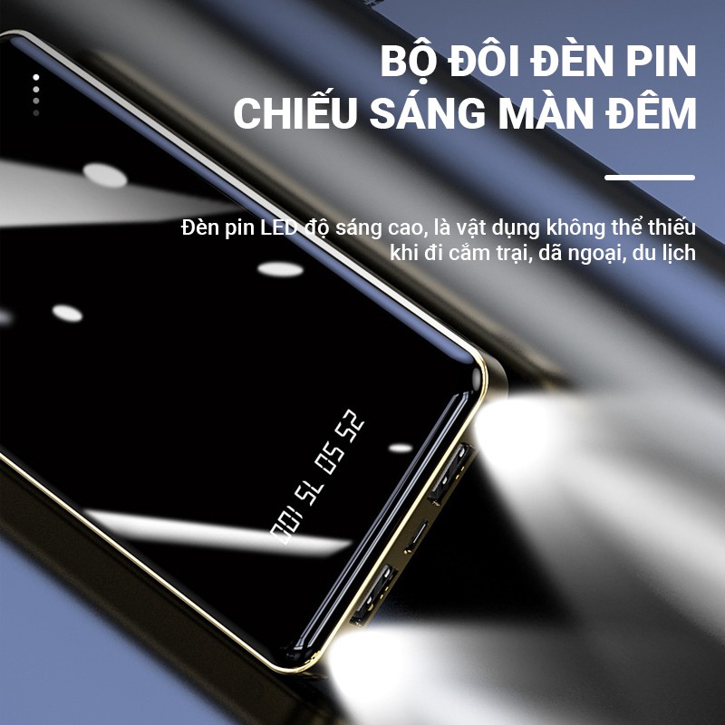 - Vừa là pin sạc vừa là đèn pin với bộ đôi đèn LED độ sáng cao, chiếu sáng cả màn đêm, rất tiện dụng trong cuộc sống