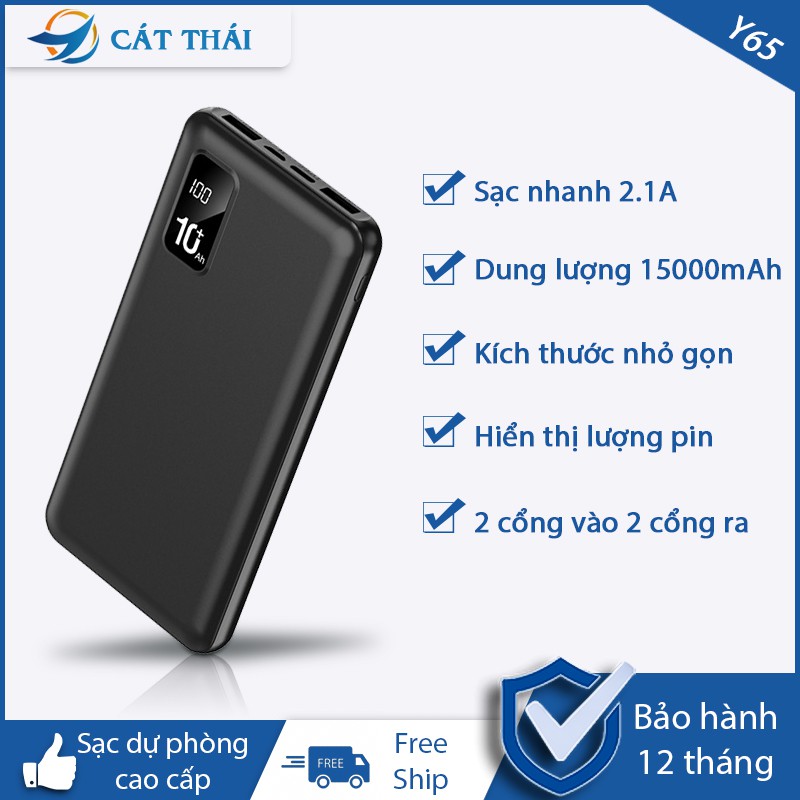 Pin sạc dự phòng Cát Thái Y65 dung lượng 15000mAh hỗ trợ sạc nhanh tốc độ 2.1A 2 cổng ra USB 2 cổng sạc vào Micro/Type-C