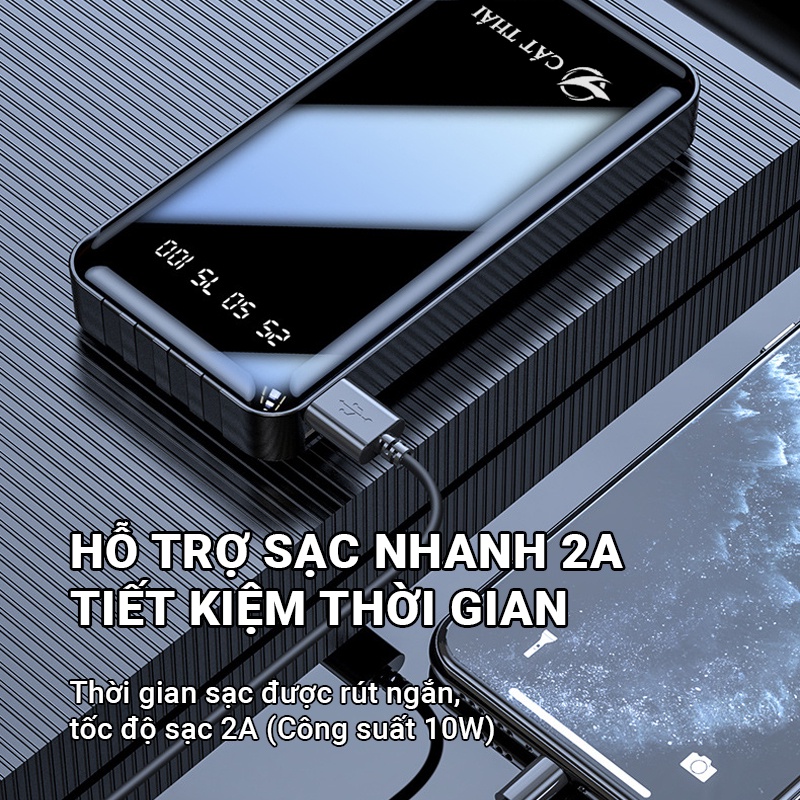 Pin sạc dự phòng Cát Thái YM-290S 20000mAh tích hợp sẵn 4 cáp sạc Micro/Type-C/Lightning/USB hỗ trợ sạc nhanh 2A