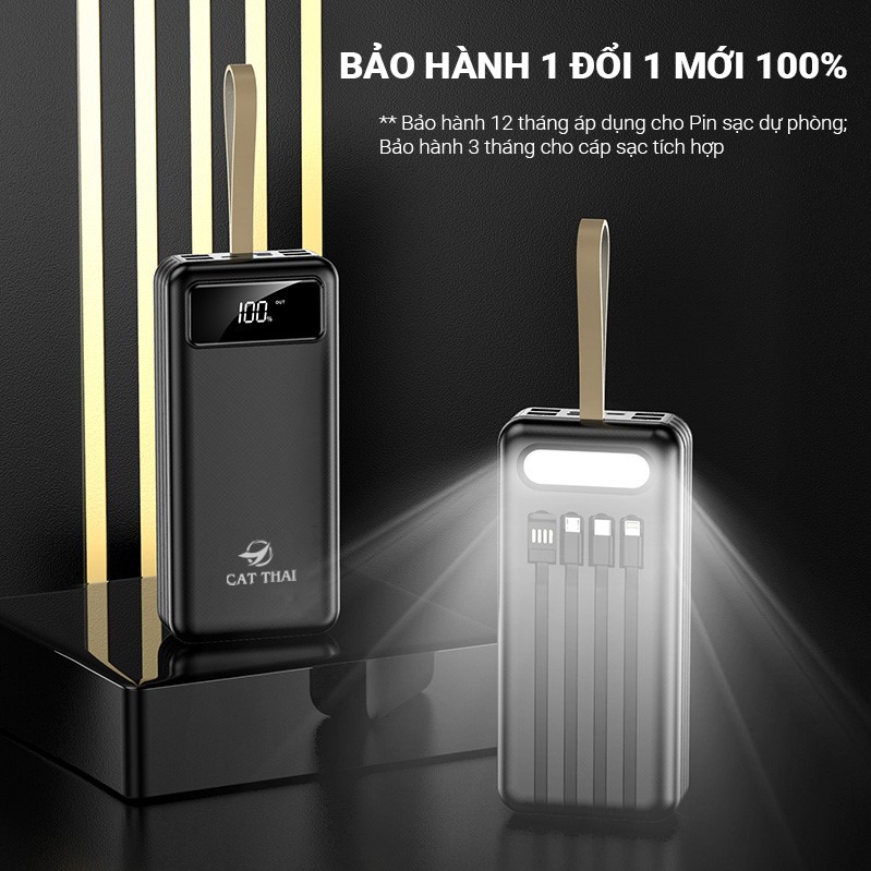 - Bảo hành chính hãng 12 tháng (1 đổi 1 mới 100%) áp dụng cho pin sạc dự phòng. Bảo hành 3 tháng áp dụng cho 4 cáp sạc tích hợp