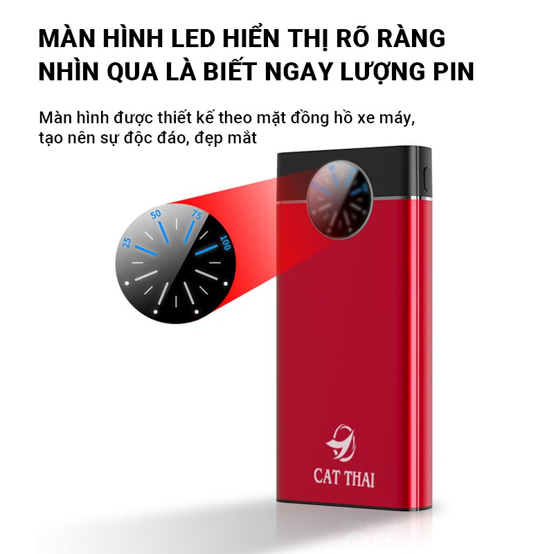 Giới thiệu Pin sạc dự phòng Cát Thái YM-281 25000mAh nhỏ gọn dễ mang, sạc nhanh 2.1A, 2 cổng sạc ra USB, 3 cổng sạc vào, tiện dụng