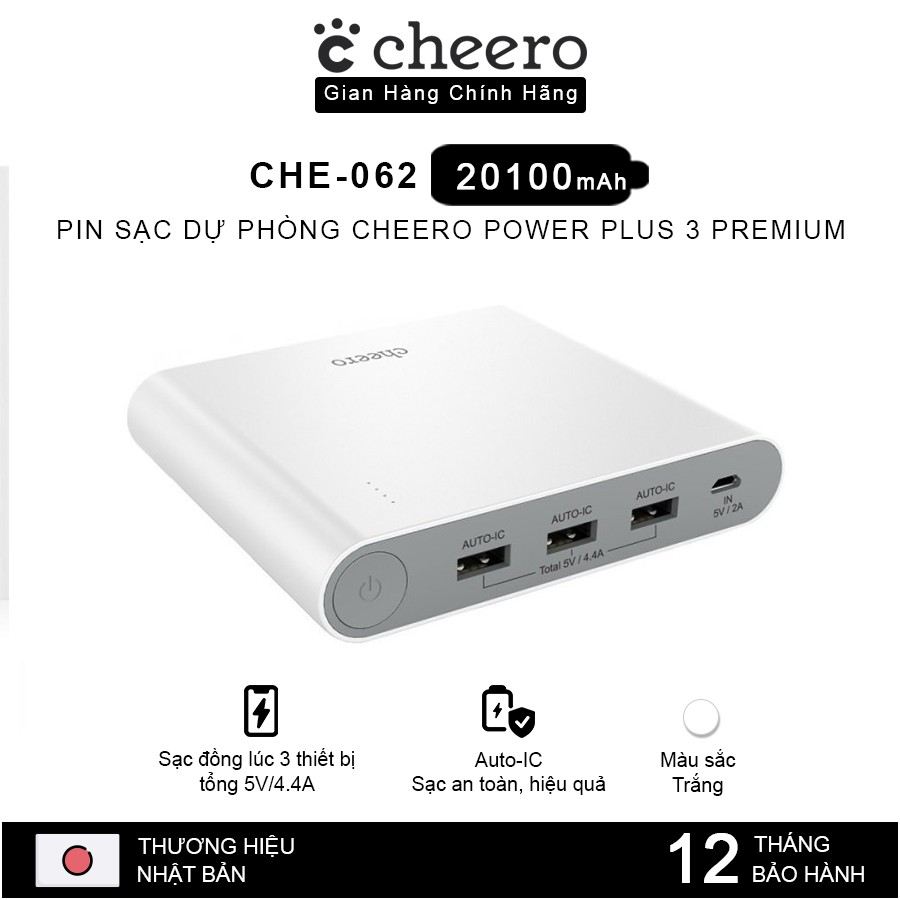 Điện Thoại & Phụ Kiện > Pin sạc dự phòng > 10000 - 20000mAh || Pin Sạc Dự Phòng Cheero Power Plus 3 Premium CHE-062 20100mAh - Hàng Chính HãngCòn hàng