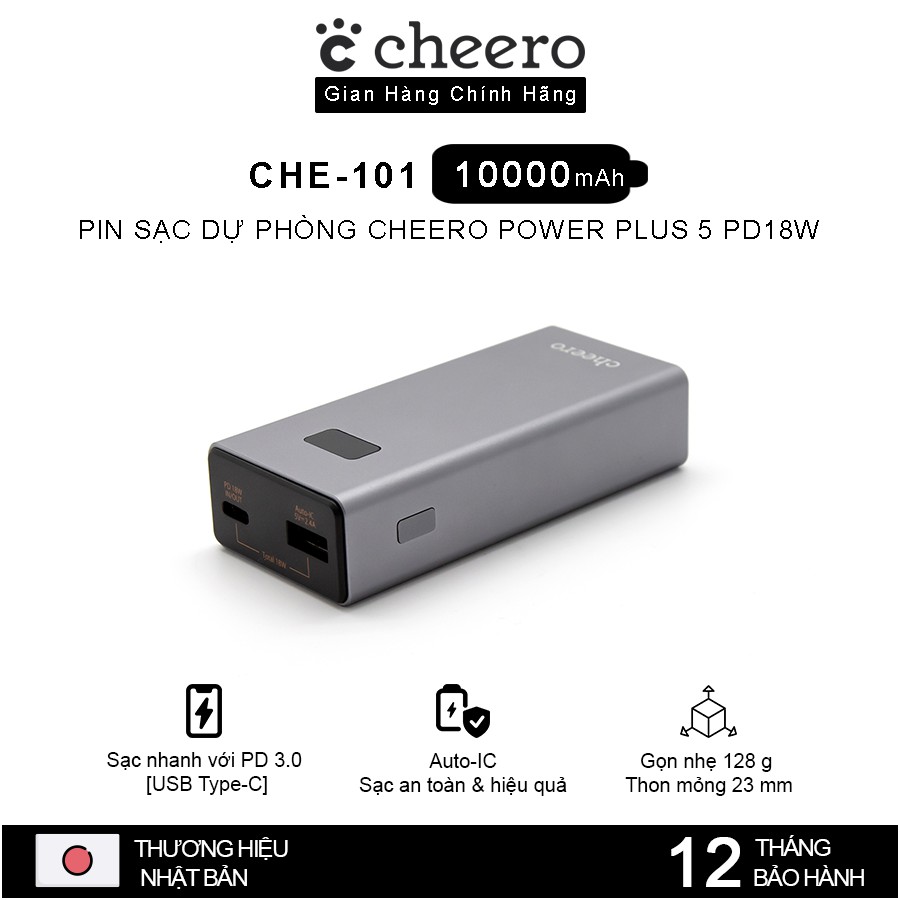 Điện Thoại & Phụ Kiện > Pin sạc dự phòng > 10000 - 20000mAh || Pin Sạc Dự Phòng Cheero Power Plus 5 CHE-101 10000mAh - Hàng Chính HãngCòn hàng