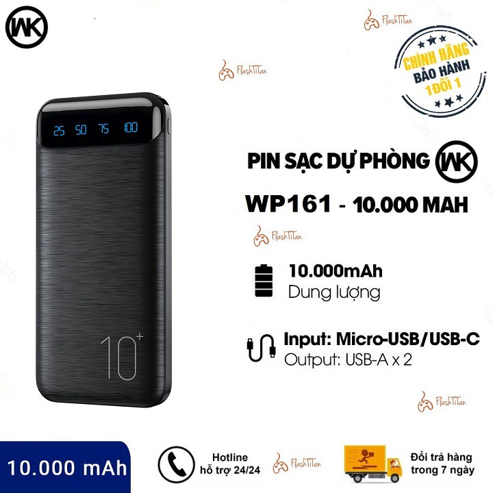 ✅ Tên sản phẩm: Pin dự phòng WK WP-161 10000mAh 2 cổng USB