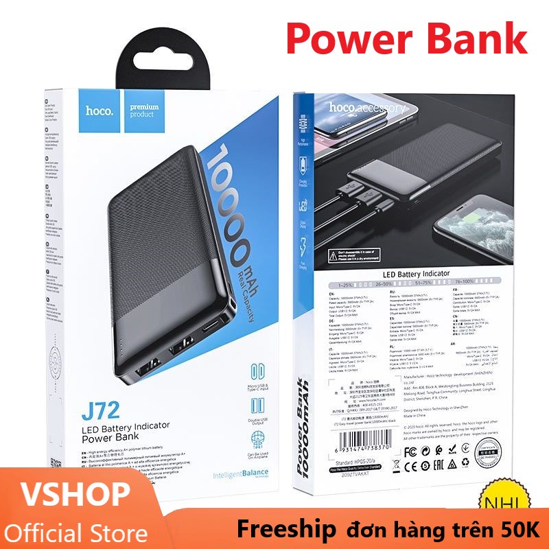 Giới thiệu Pin Sạc Dự Phòng Chính Hãng HOCO J72-10.000mAh-HOCO J72- Hàng cao cấp Full Hộp